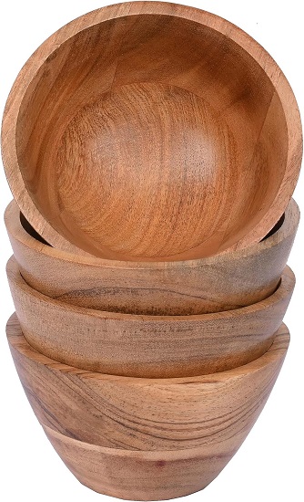 Acacia Wood Bowl Sets of 4 for Kitchen Meal Party and Salad Fruit, Vegetable, Snack (4.5" x 4.5" x 2.5")