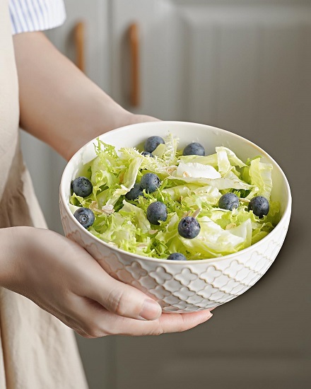 【Durable Stoneware】Made of premium ceramic, crafted with a farmhouse decor finish, embossed with 4 different patterns, this aesthetically-pleasing ceramic bowls set offer scratch resistance and durability, ensuring long-lasting use.