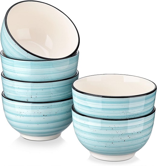 • 【Lead Free Stoneware Material】The bowls are made of blended and well-selected stoneware which is not too thick and for sure dishwasher and microwave safe. It can stand up to the heat from the microwave,retains heat more evenly than other types of pottery and also could bear cold from frezzer.