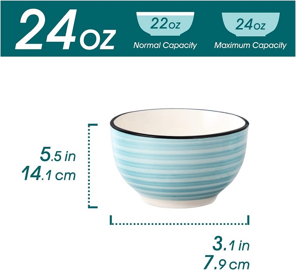 24oz Stoneware Cereal Bowls 5.5 Inch Microwave & Dishwasher Safe Lead-free Soup Bowls Blue Bowls Kitchen Bowl