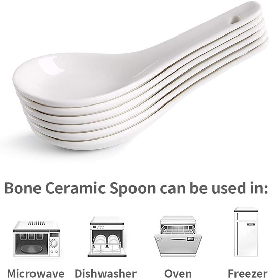 Sturdy Food-Grade Ceramic: 12-Piece Ceramic Soup Spoons Set. Made of great bone ceramic, proper for Corelle Soup/Cereal Bowls. It can be safely used in the freezer, microwave and oven. Healthier than plastic, stainless steel, and wooden spoons.