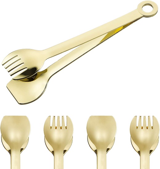 Mini Appetizer Tongs Stainless Steel Set of 4, Gold Plated Small Serving Tongs, 6 Inch(15.2cm, Golden)