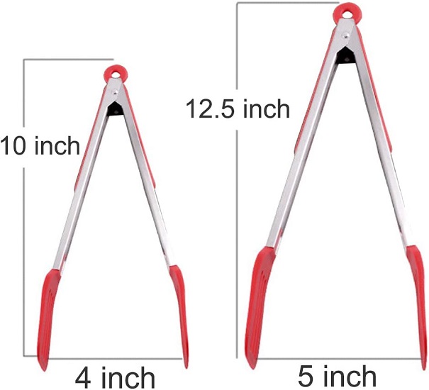 • SAFE AND EASY TO CLEAN: Our kitchen tongs are made from stainless steel and food grade silicone. Tongs are safe to use with all your nonstick pans or grill grates, hygienic, dishwasher safe and won’t absorb odors or flavors. Let you enjoy your food without worrying about the health effects.
